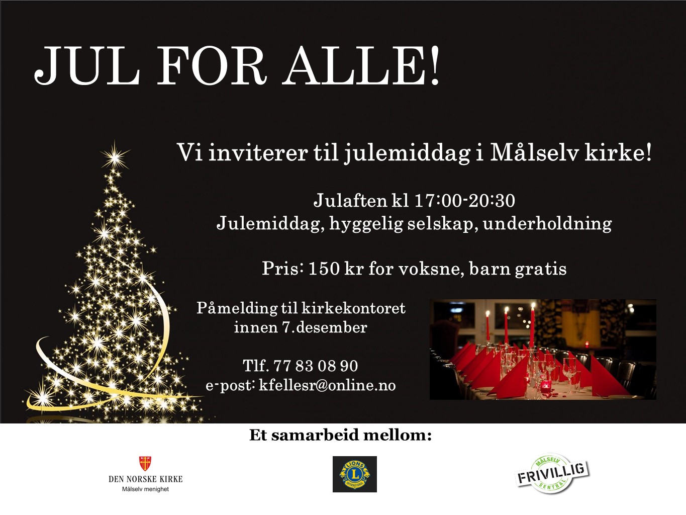 Det blir også i år felles julefeiring i Målselv kirke for de som har lyst til å være med på det!