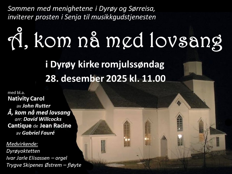 Prosten inviterer til musikkgudstjeneste i Dyrøy kirke 28.desember.